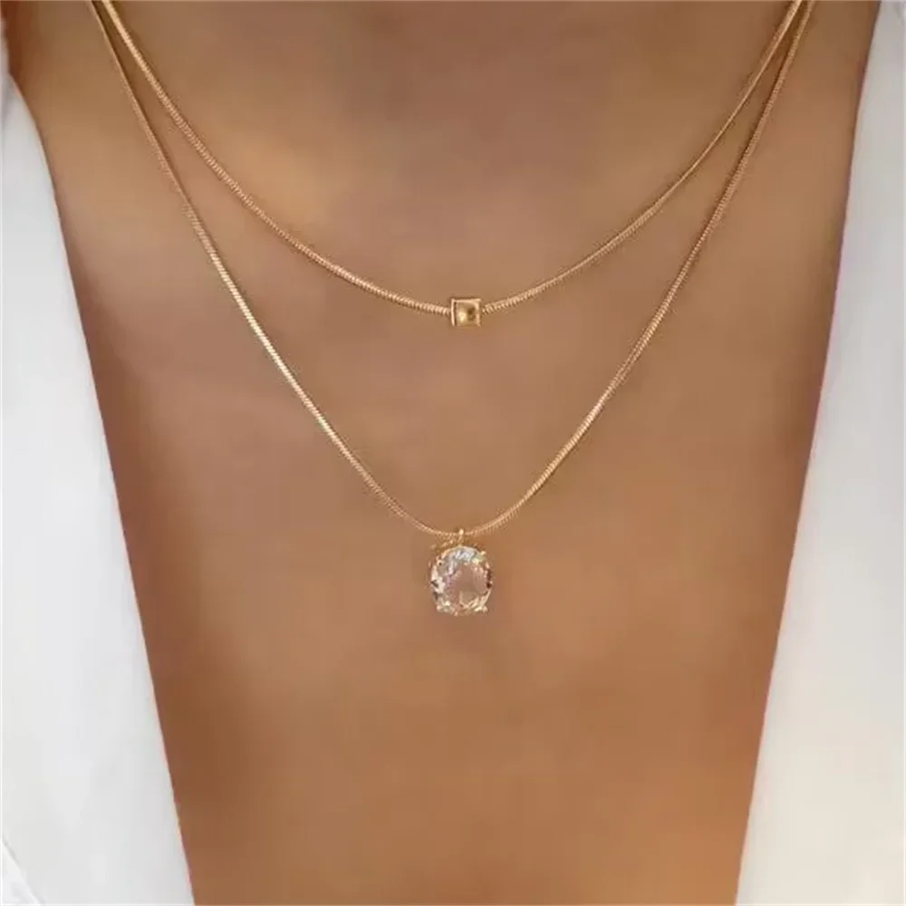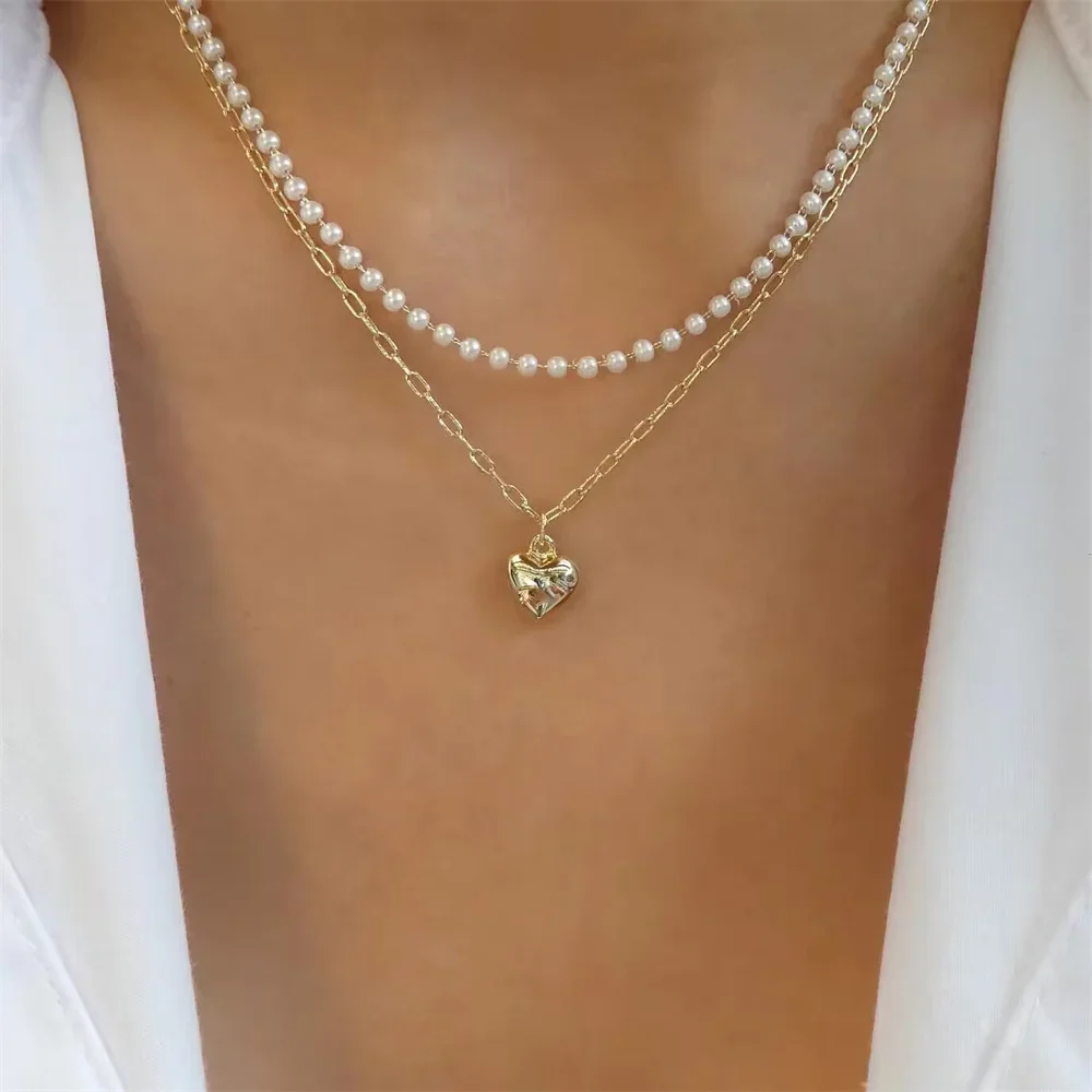 Vintage Fashion Simple Gold-plate Snake Chain Imitation Pearl Pendant Necklace For Women Female Boho Multilevel Jewelry Gift