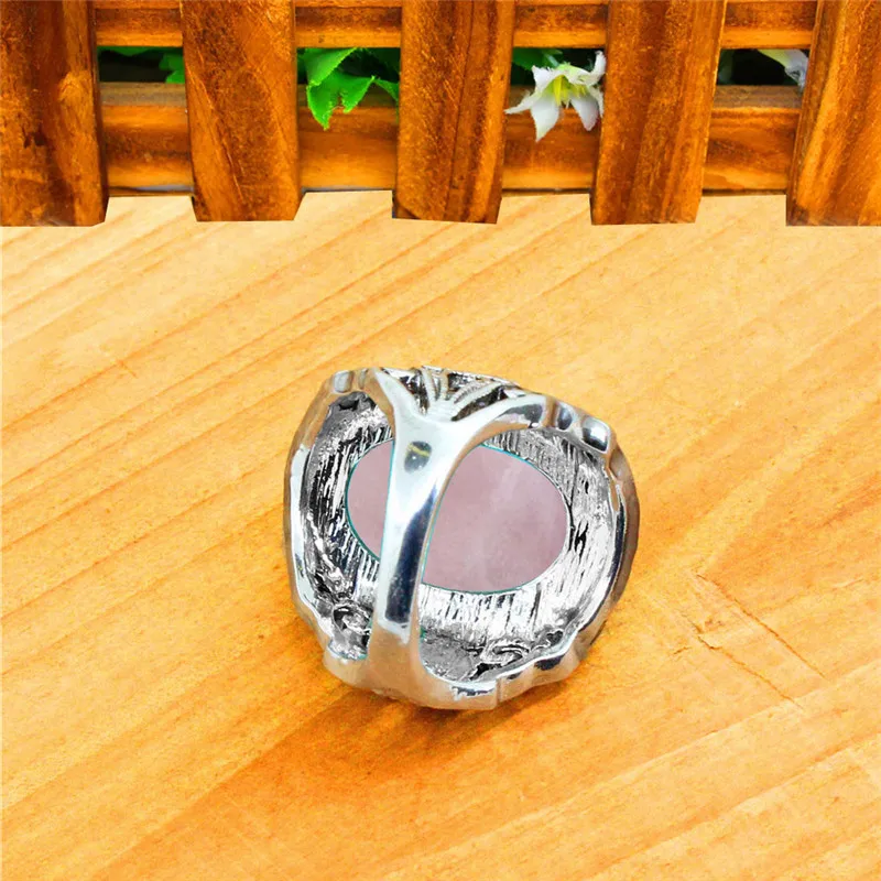 Vintage Pink Quartz Jades Amethysts Rings For Women Antique Silver Plated Plant Snail Fashion Ring