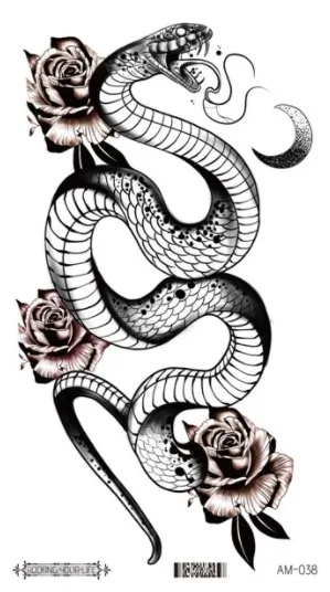Waterproof Temporary Tattoo Sticker Snake Eagle Flowers Arm Clavicle Body Art Sticker Water Transfer Fake Tattoos Makeup Sticker