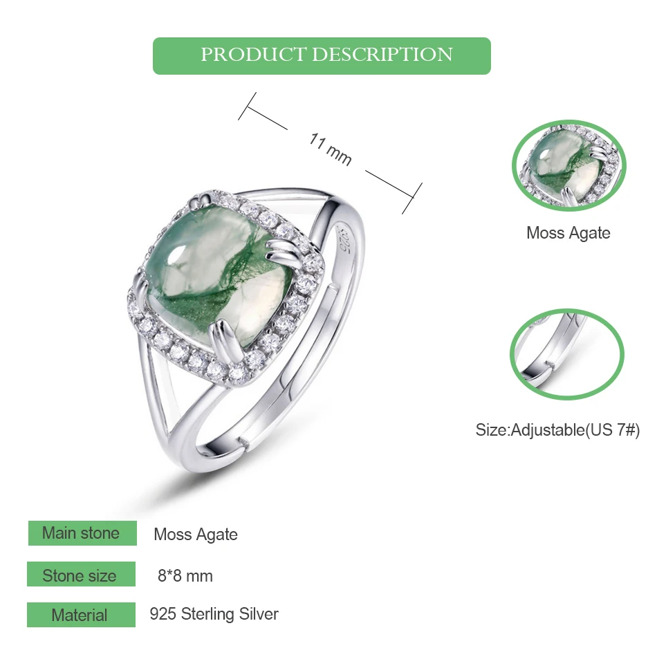WES 925 Sterling Silver Natural 8*8mm Moss Agate Gemstone Rings For Woman Party Elegant Fine Jewerly Anniversary Christmas Gifts