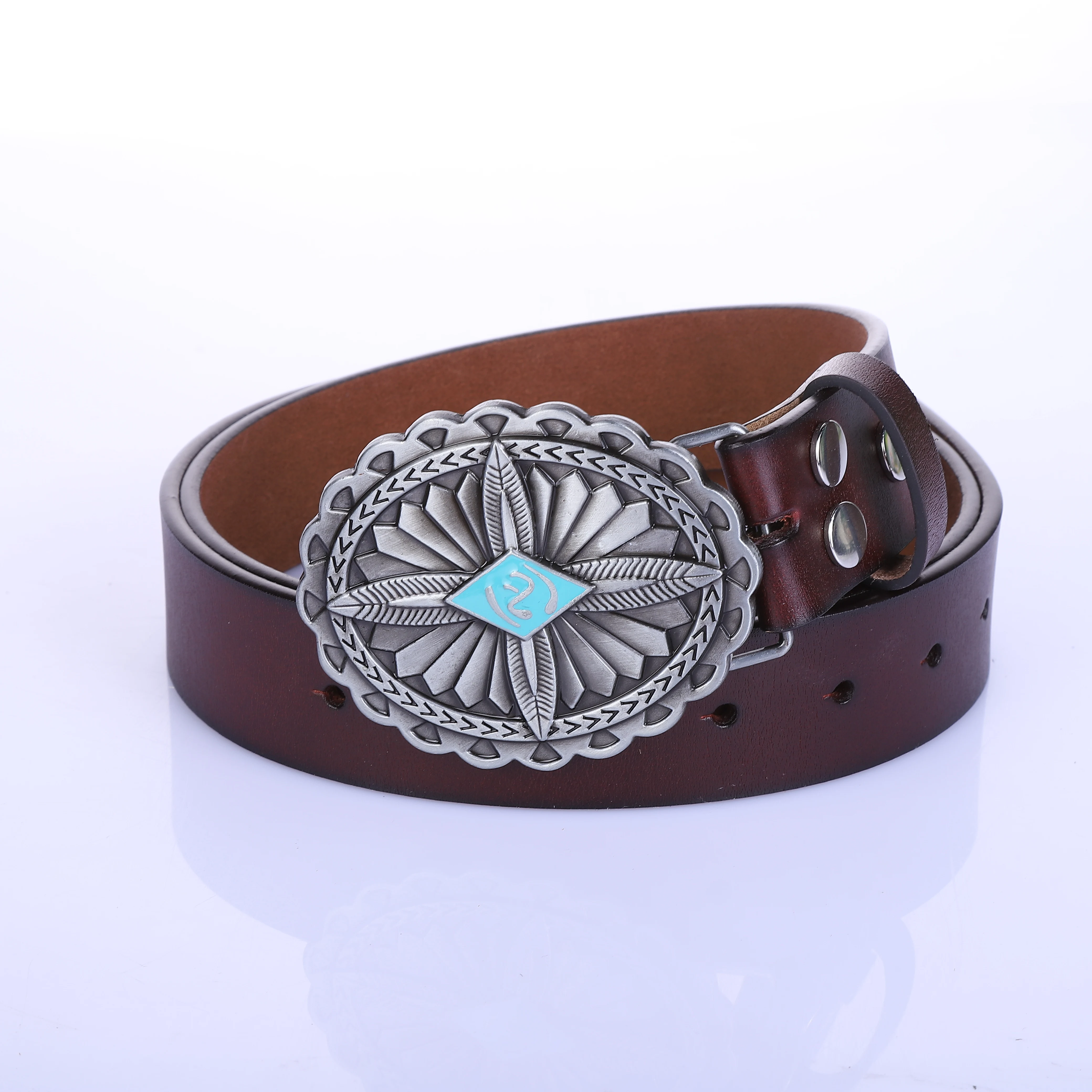 Western Cowboy Leather Belt for Men Women Kids Vintage Pattern Silver Novelty Buckle button Belts