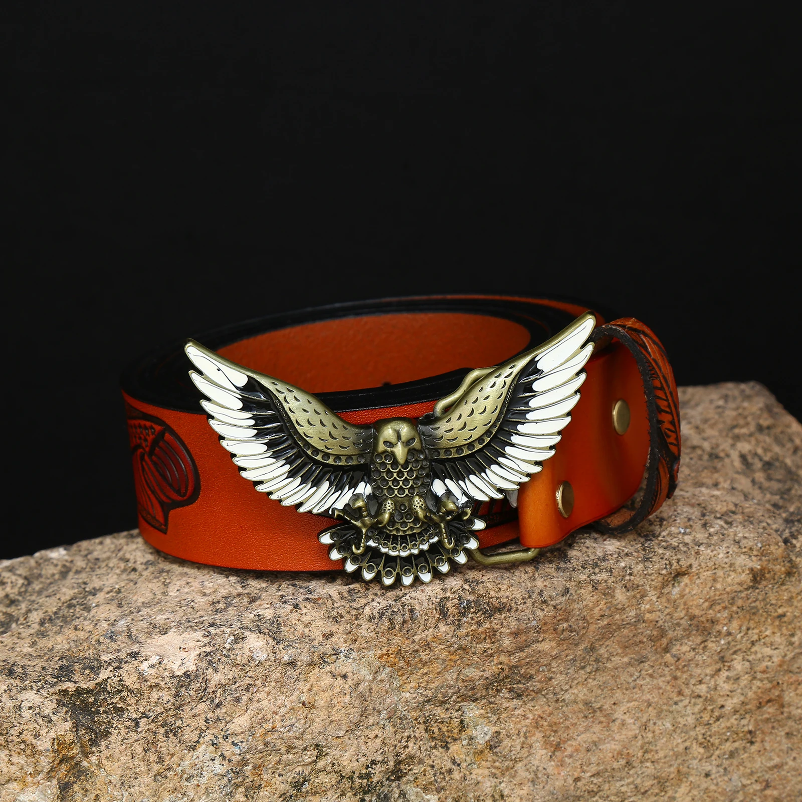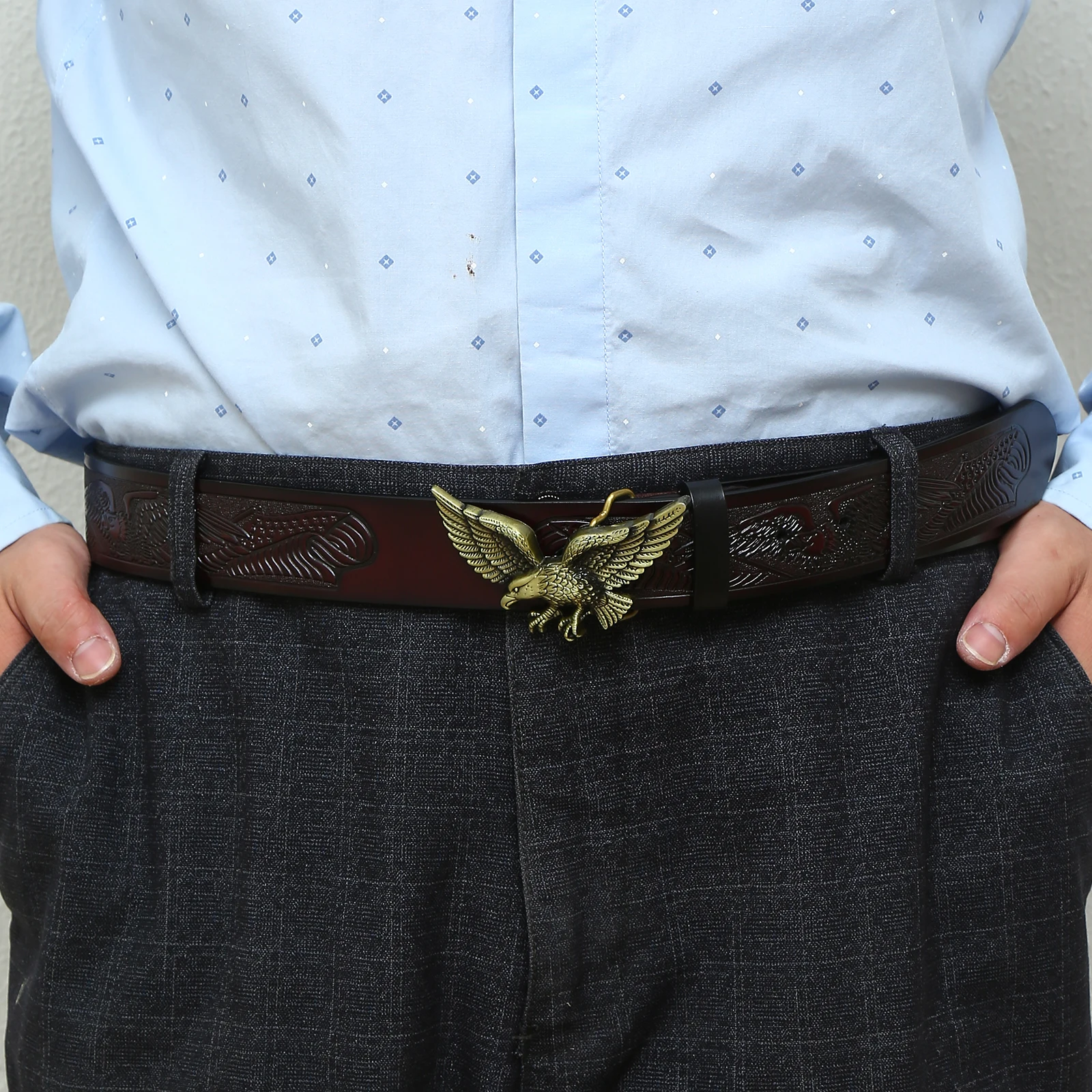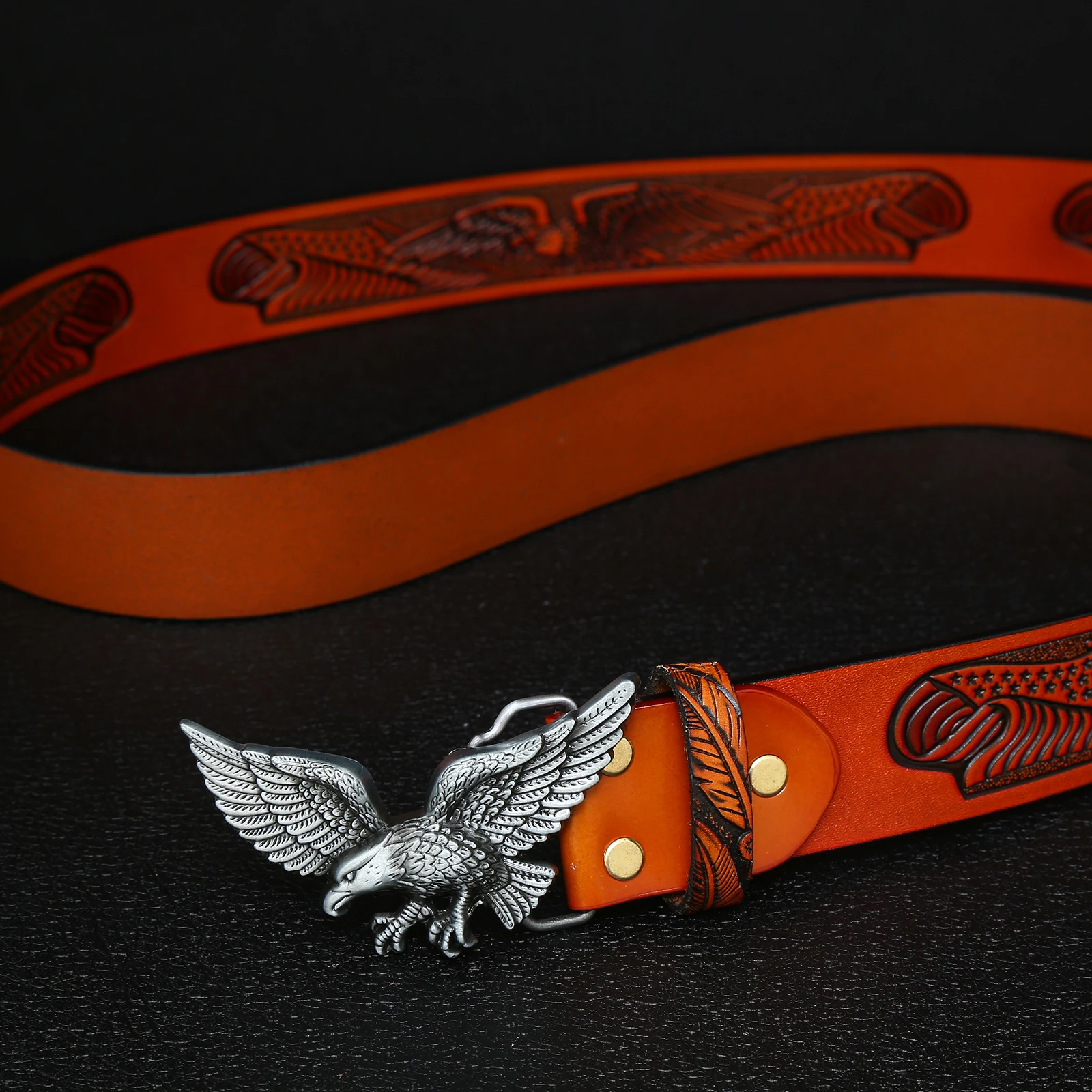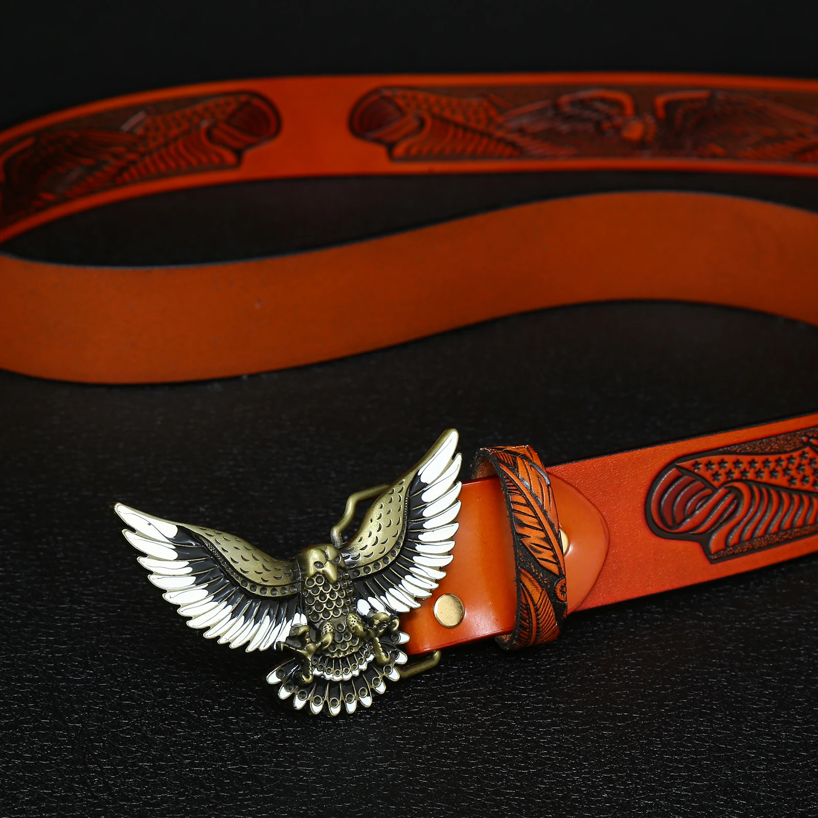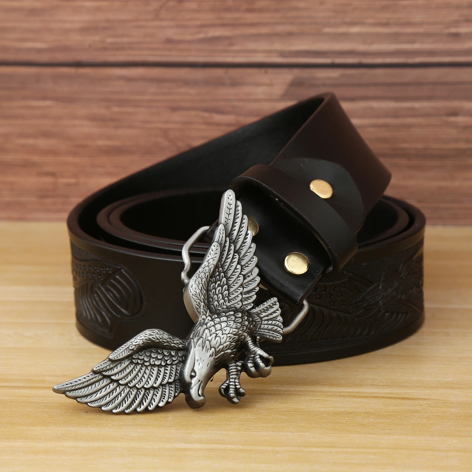 Western denim zinc alloy eagle belt buckle with embossed leather belt for men’s jeans decoration