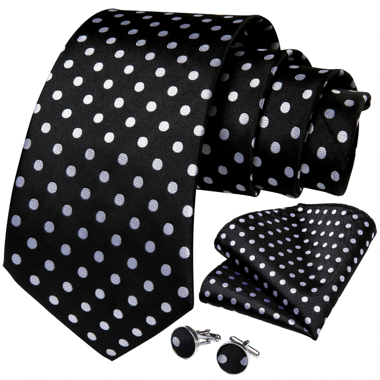 White Dot Black Silk Ties For Men Business Wedding 8cm Men’s Neck Tie Pocket Square Cufflinks Men Accessoreis Gift