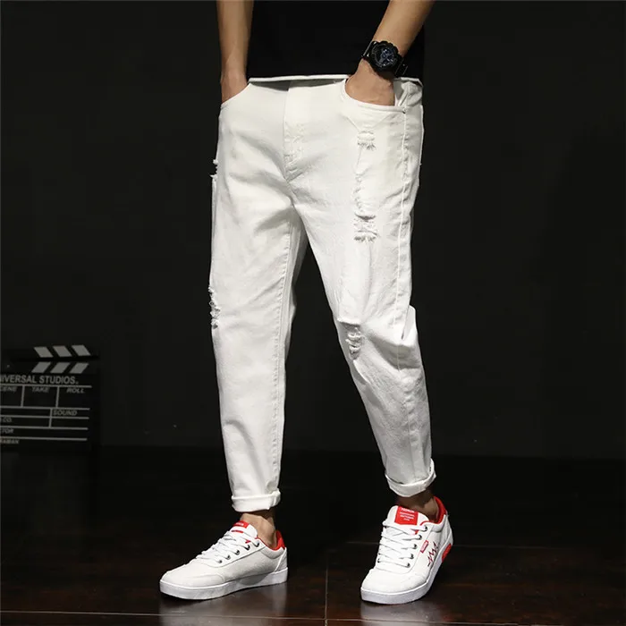 White Jeans Men Ripped Harem Jean Denim Distressed Mens Pants Spring Summer For Man 2020 Plus Size 38 40 42 Big Cowboy Trousers