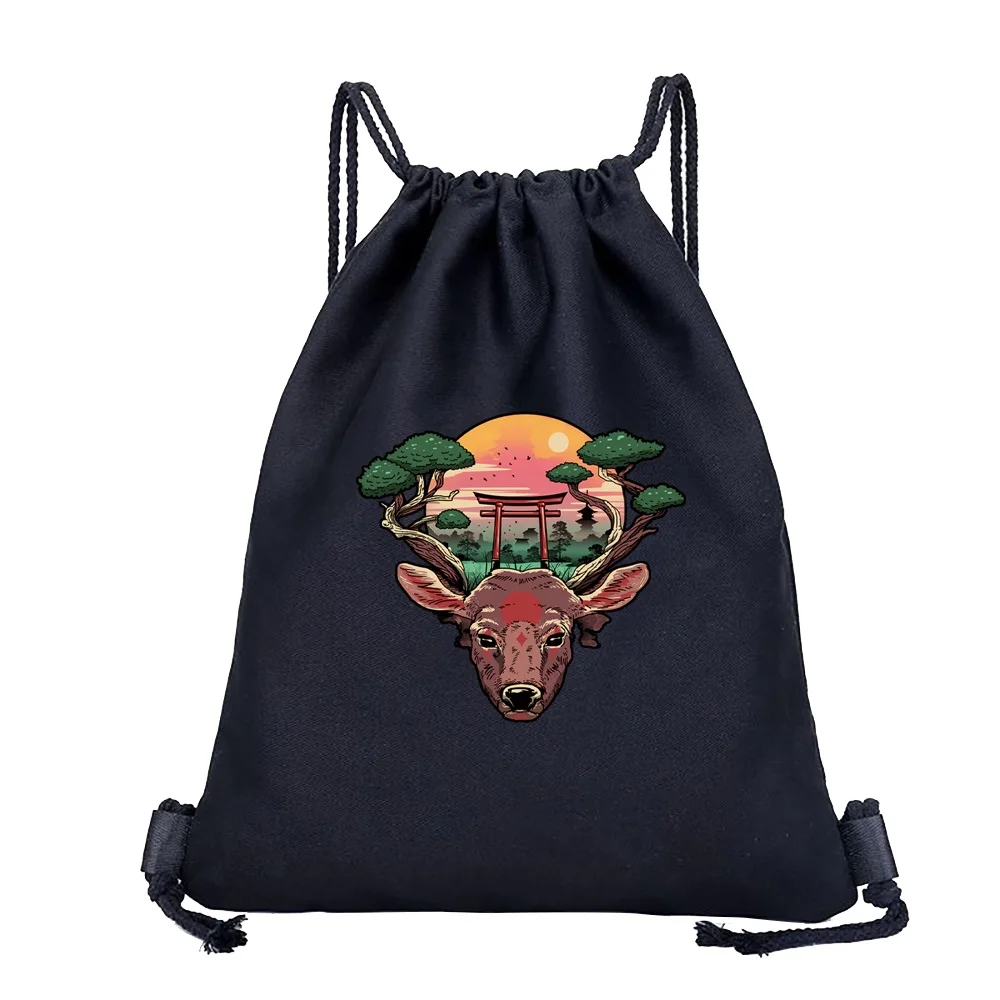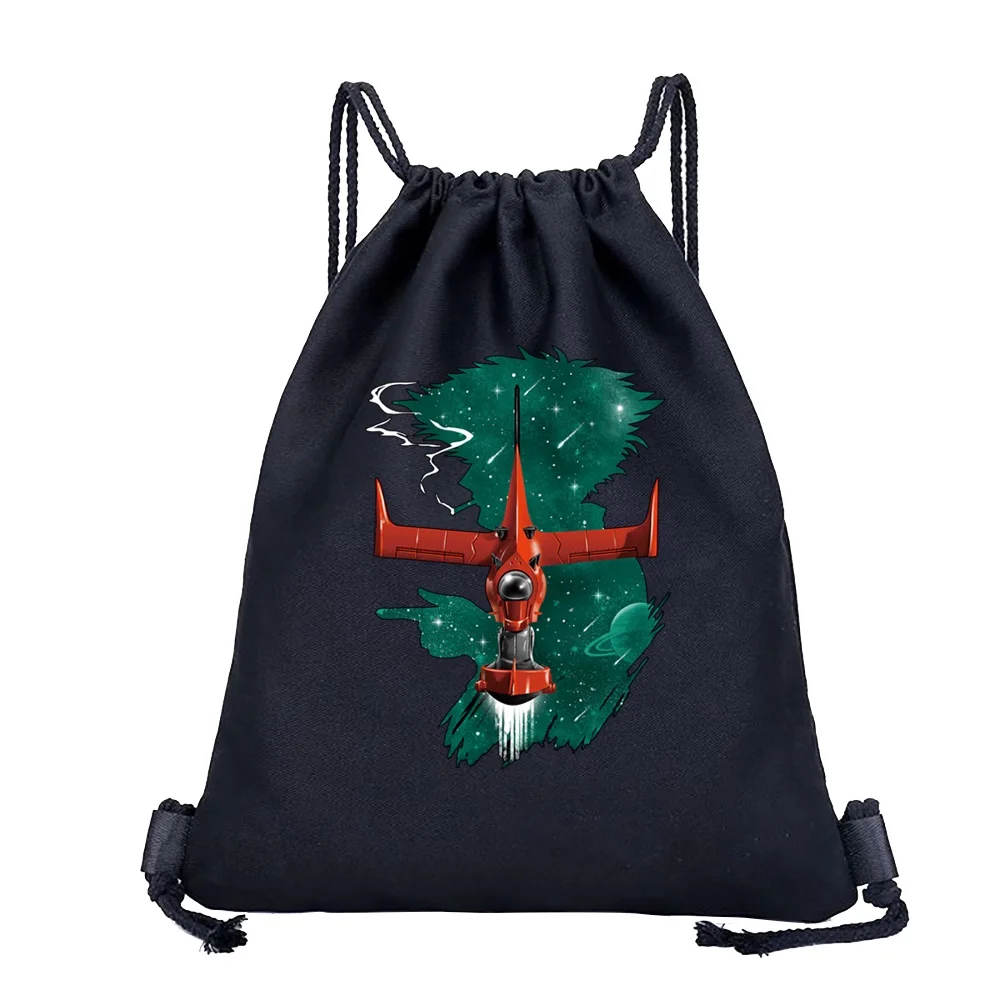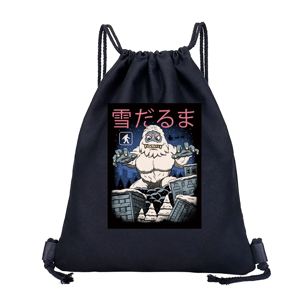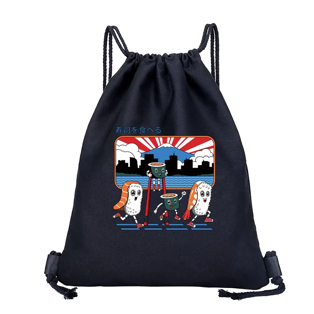 Women Canvas Backpack Drawstring Gym Bags,Swimming Sports Bags Japan Cartoon Print Shoulder Shopper Cloth Bag Tote Shopper Bags