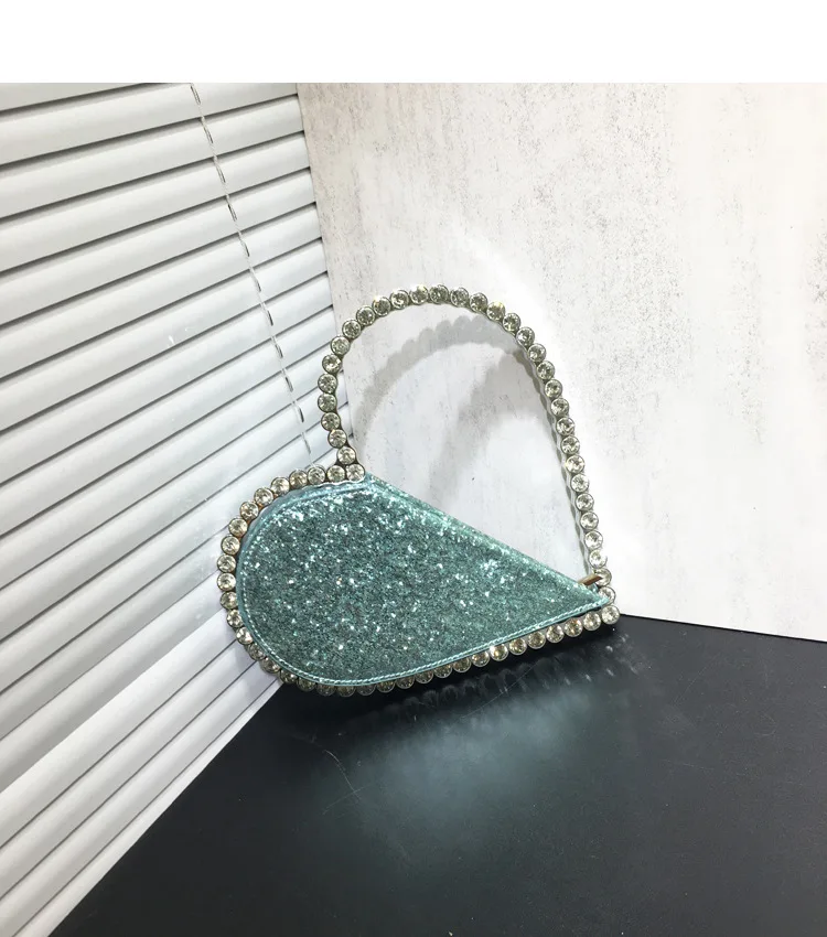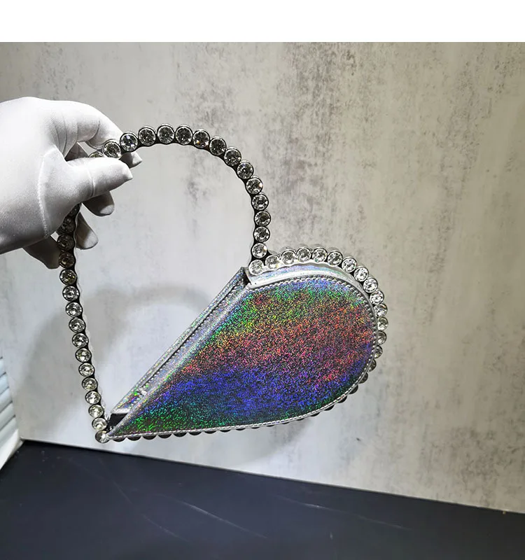 Women Heart Shape Leather Evening Bags With Handle Bridal Diamond Handbags Banquet Handbag Wedding Party Day Clutches Purses Bag