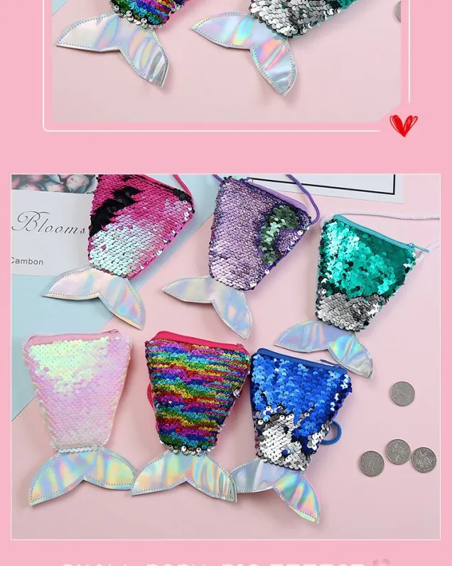 Women Mermaid Tail Sequins Coin Purse Girls Crossbody Bags Sling Money Change Card Holder Wallet Purse Bag Pouch For Kids Gifts