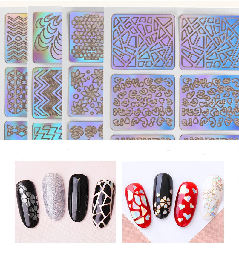 Women Nail Art Stencil Manicure Tools Irregular Grid Printed Square Sticker Nail Art Hollow Laser Sticker 24Pcs Fashion
