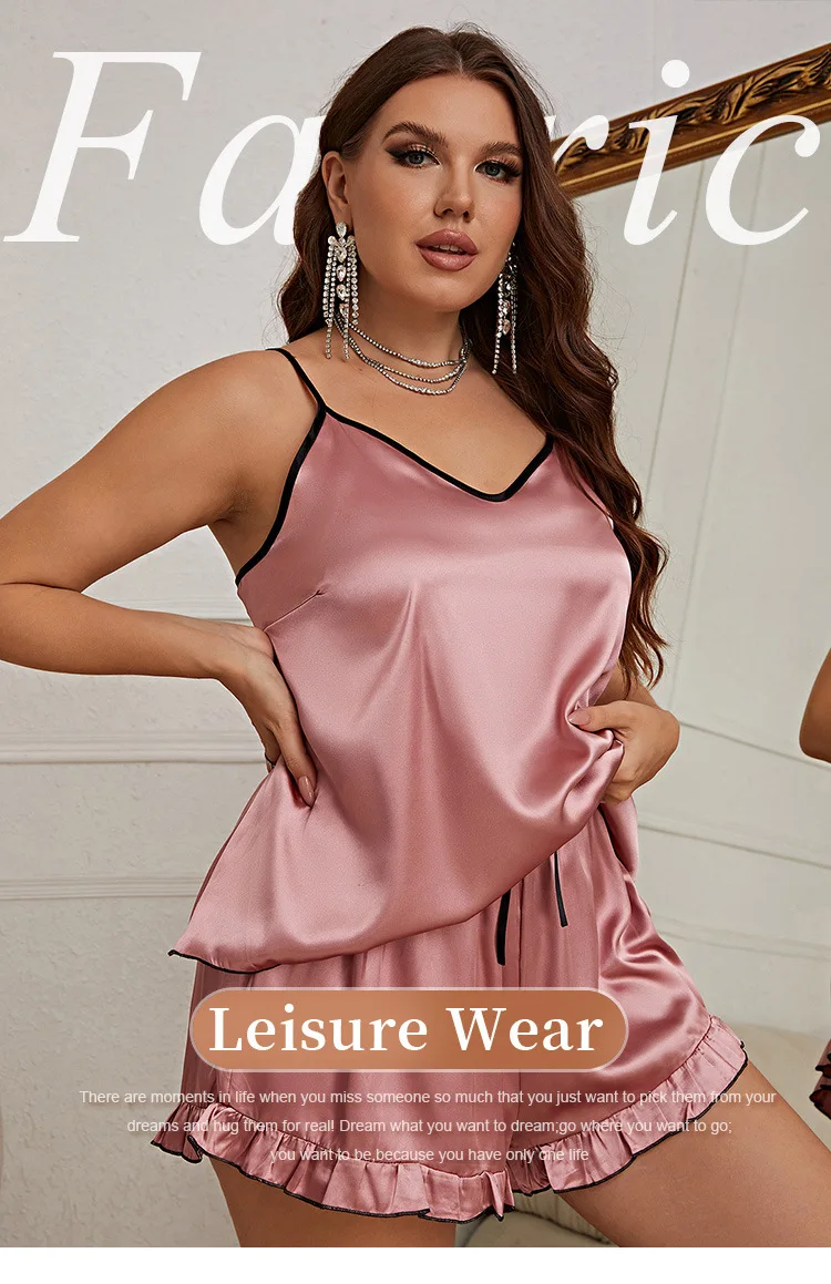 Women Satin pajamas large size set sexy women pajama summer with V-neck suspender sleeveless shorts sleepwear