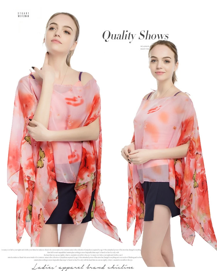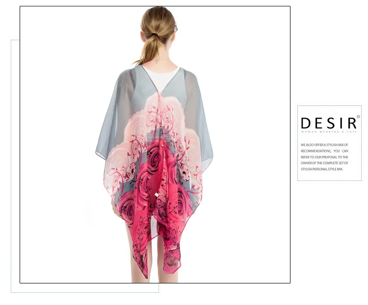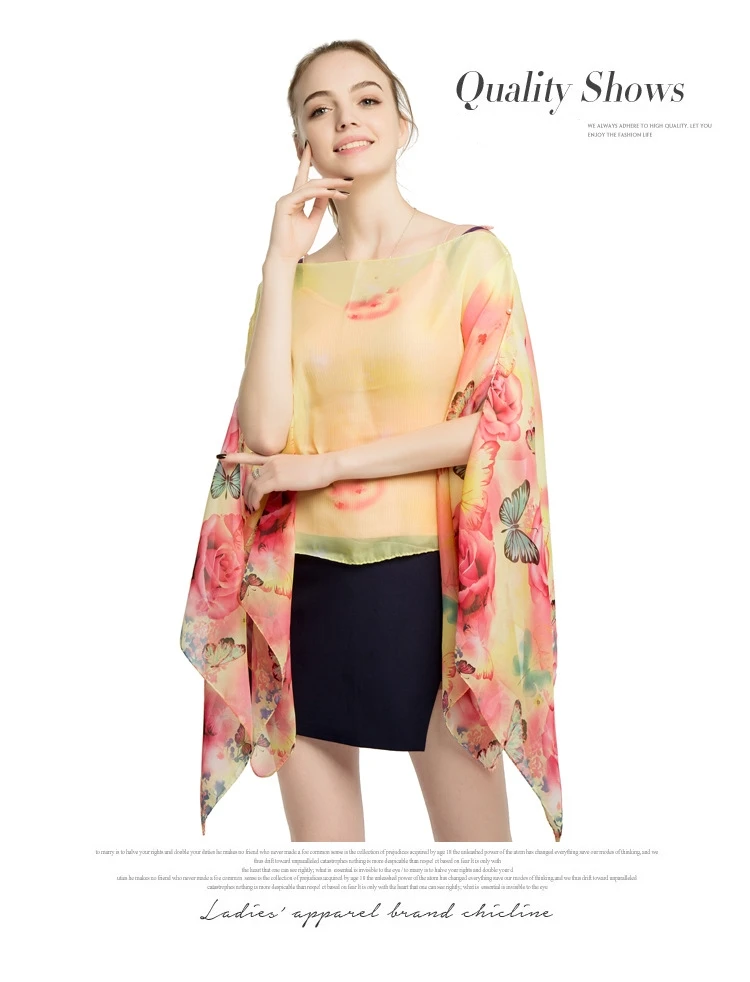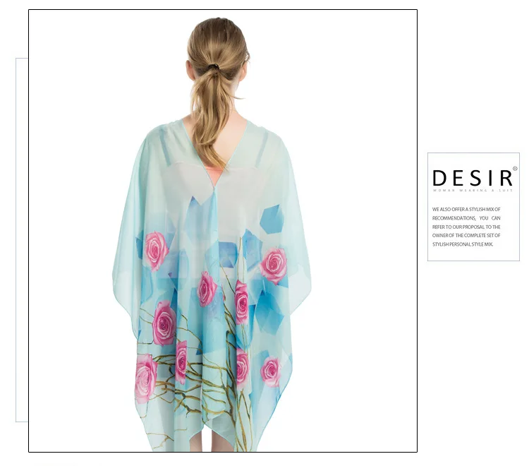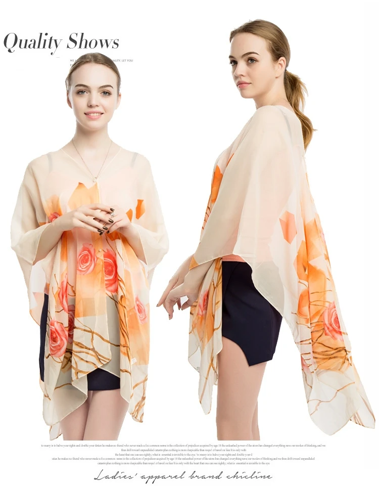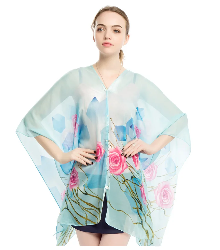 Women Sun Protection Shawl for Cycling Driving Lady Summer Chiffon Bikini Blouse Spring Silk Feel Scarf Breathable Beach Poncho