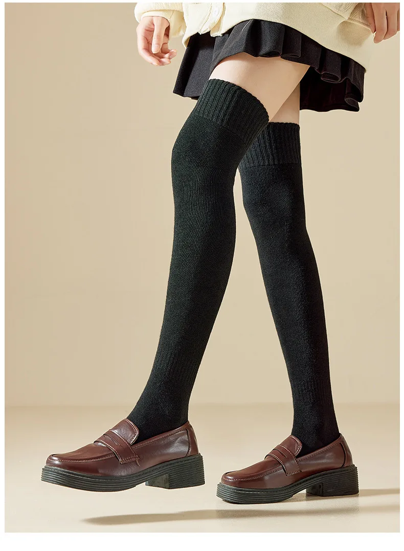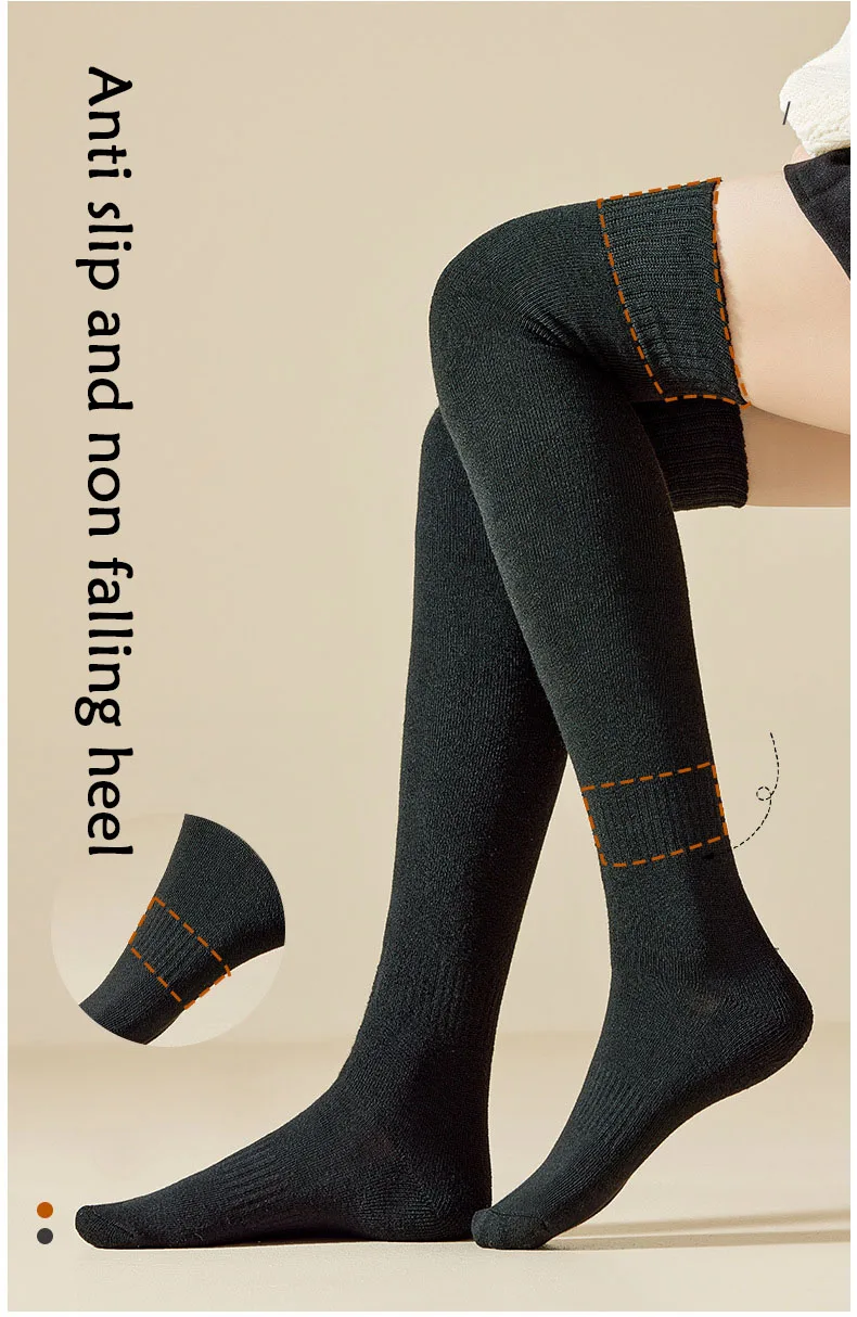 Women Winter Stockings Women’S Thicken Hosiery Over Knee Thigh High Stockings Solid Color Warm Slim Long Overknee Calf Socks JK