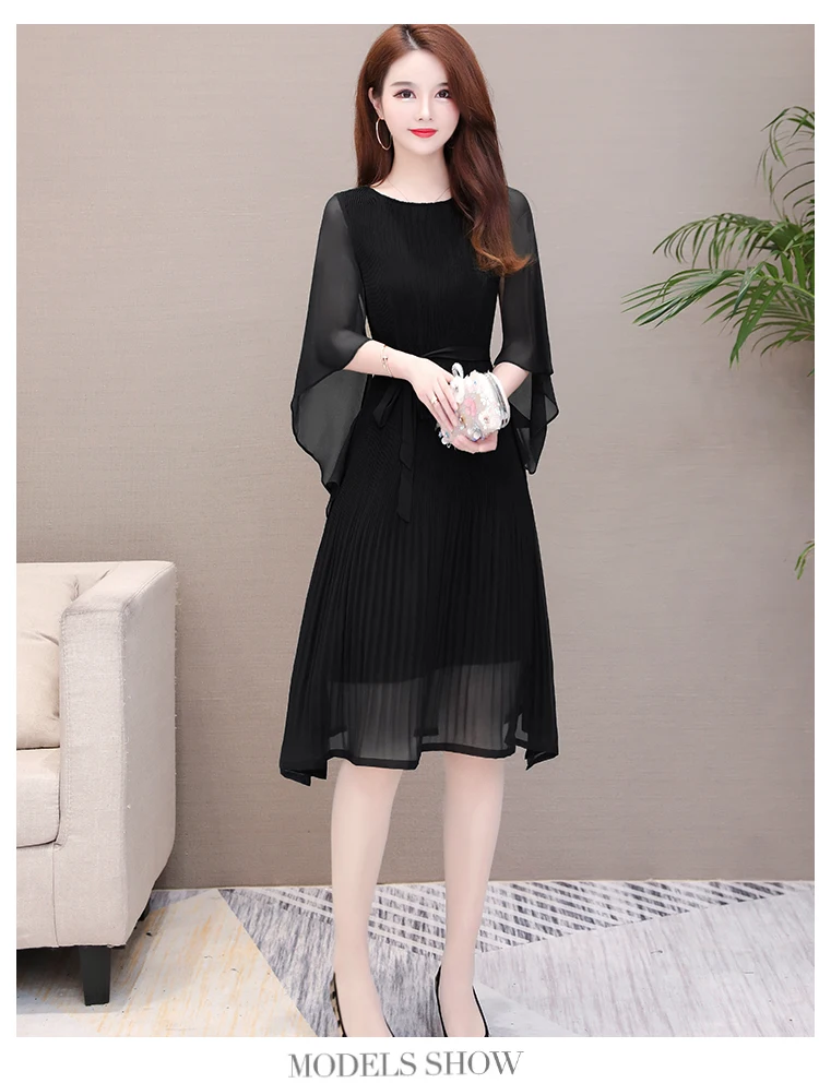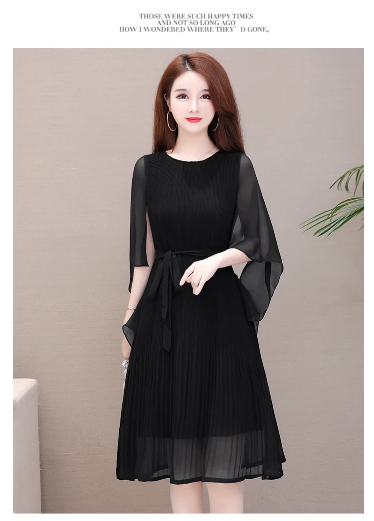 Womens Dresses New Arrival 2020 Casual Round Collar soild Color Butterfly Sleeve Chiffon Dress elegant Loose Large Size dresses
