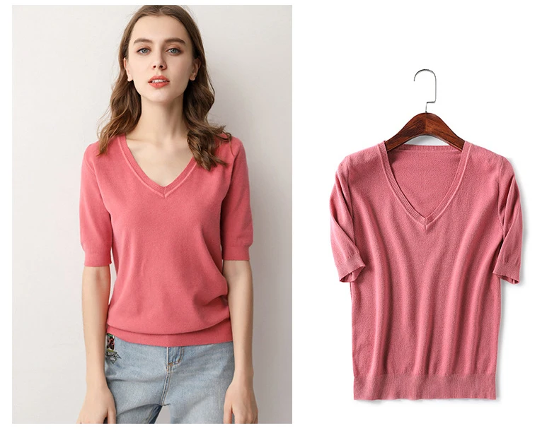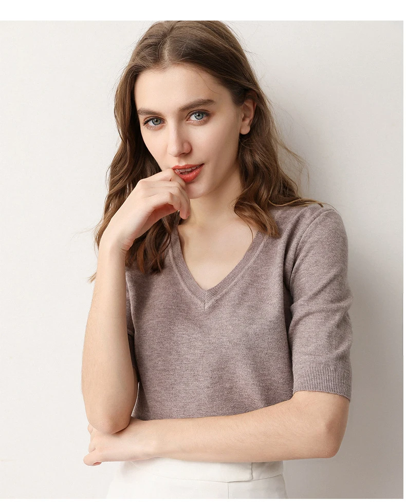 Women’s Summer Blouse 2020 Plus Size Women Knitted Blouses Short Sleeve Ladies Tops V Neck Women White Blouse Summer Knitted Top