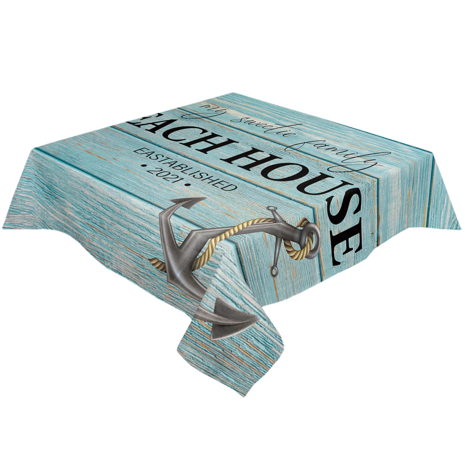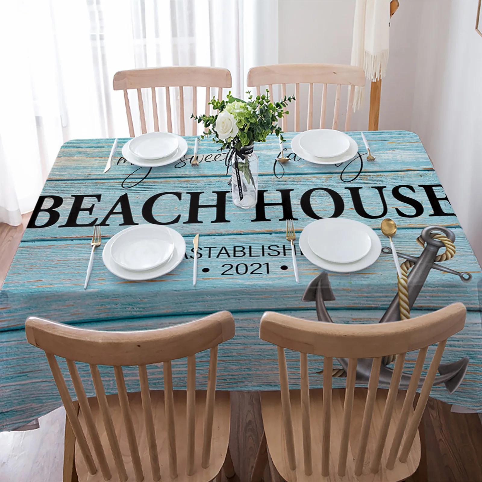 Wood Grain Anchor Beach House Tablecloth Waterproof Dining Table Rectangular Round Tablecloth Home Textile Kitchen Decoration