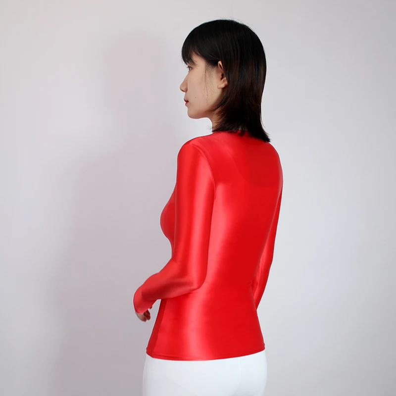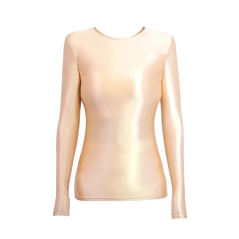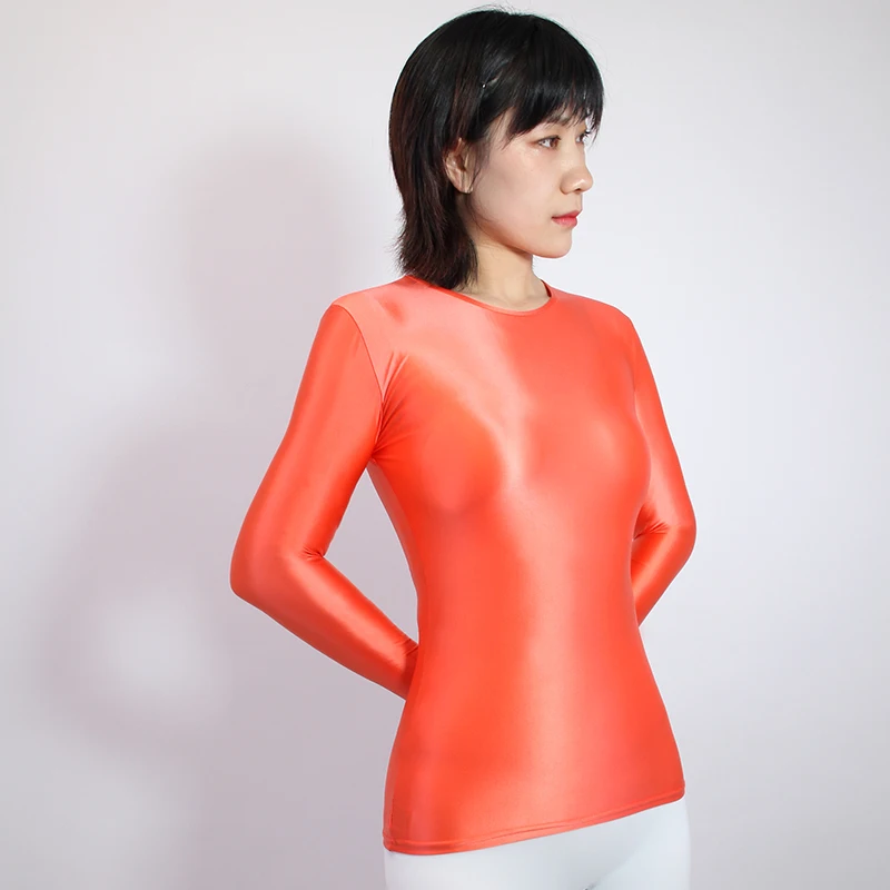 XCKNY glossy long sleeve top tight and smooth top sports versatile tights s-3xl solid shiny top Yoga sportswear