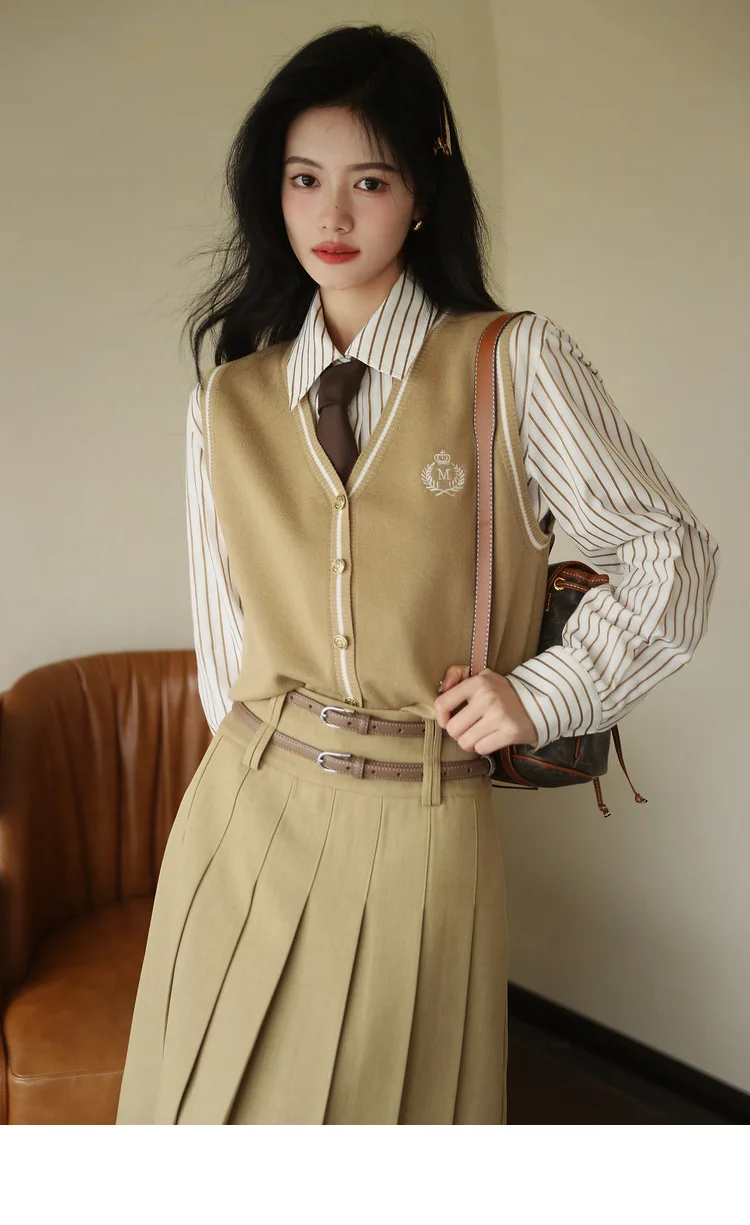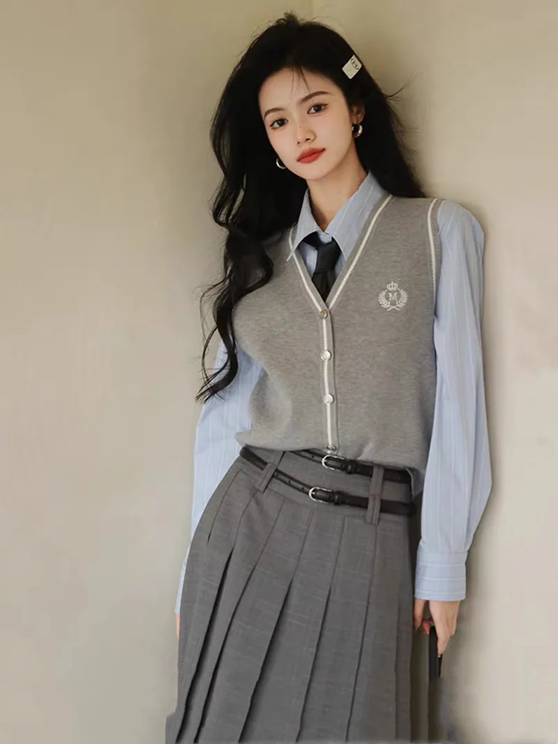XZ160 Merino Academy Style Vest Women’s New Loose Knit Cardigan Vest Sleeveless Vest Sweater