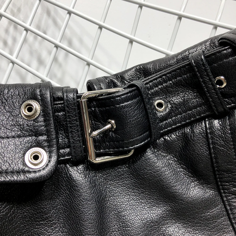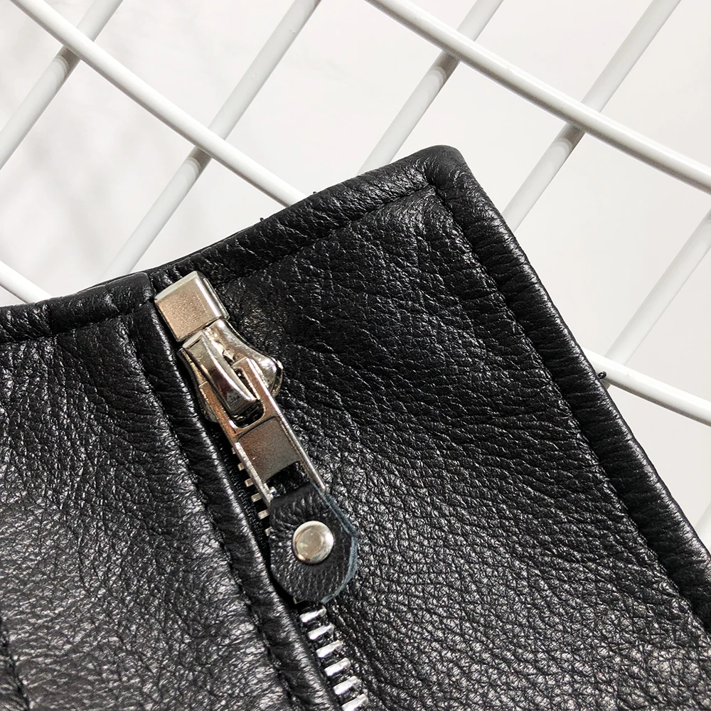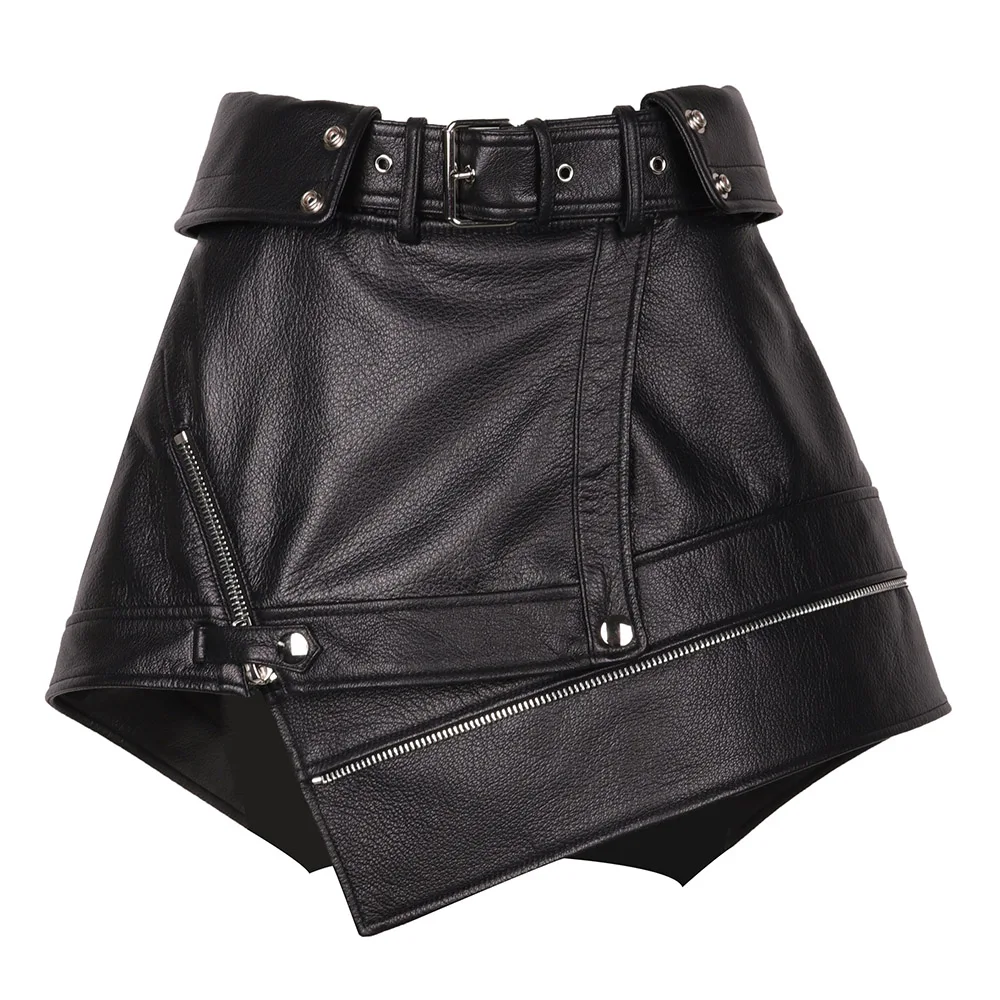 YOLOAgain A-Line Genuine Leather Skirt Women Black Asymmetrical Mini Skirt Ladies Streetwear